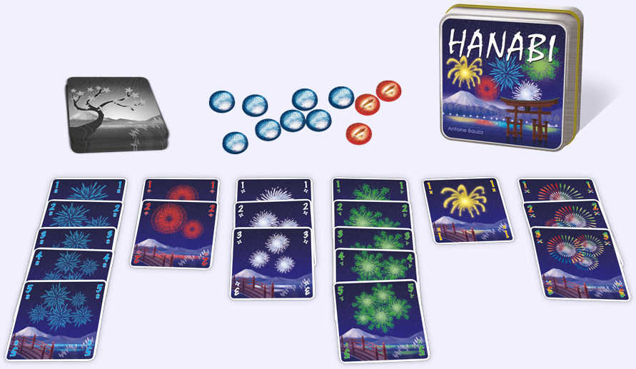 Travaille la capacité de maitrise de soi : gérer ses impulsions et atteindre ses buts. Le joueur ne voit pas les cartes qu’il a en main, ce sont les autres joueurs qui ont les informations. De plus, les joueurs disposent d’un nombre limité de jetons « indice ». Jeu où il faudra faire preuve de stratégie, prendre des décisions constructives et résoudre des problème de façon créative. Mais surtout communiquer sur des stratégies communes afin de réaliser le plus beau feu d’artifices.