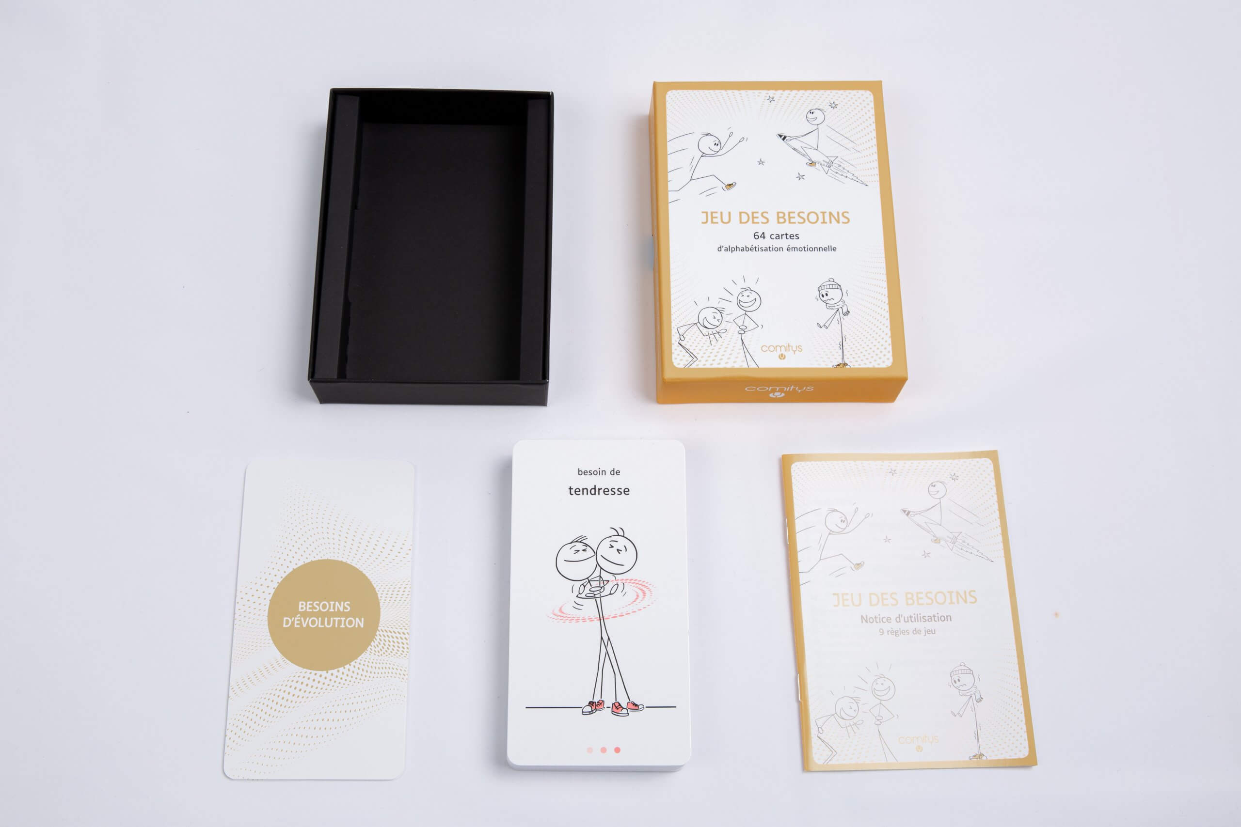 Le Jeu des besoins est un jeu de cartes d’alphabétisation émotionnelle. C’est un outil pédagogique inspiré de la Communication Non-Violente pour: