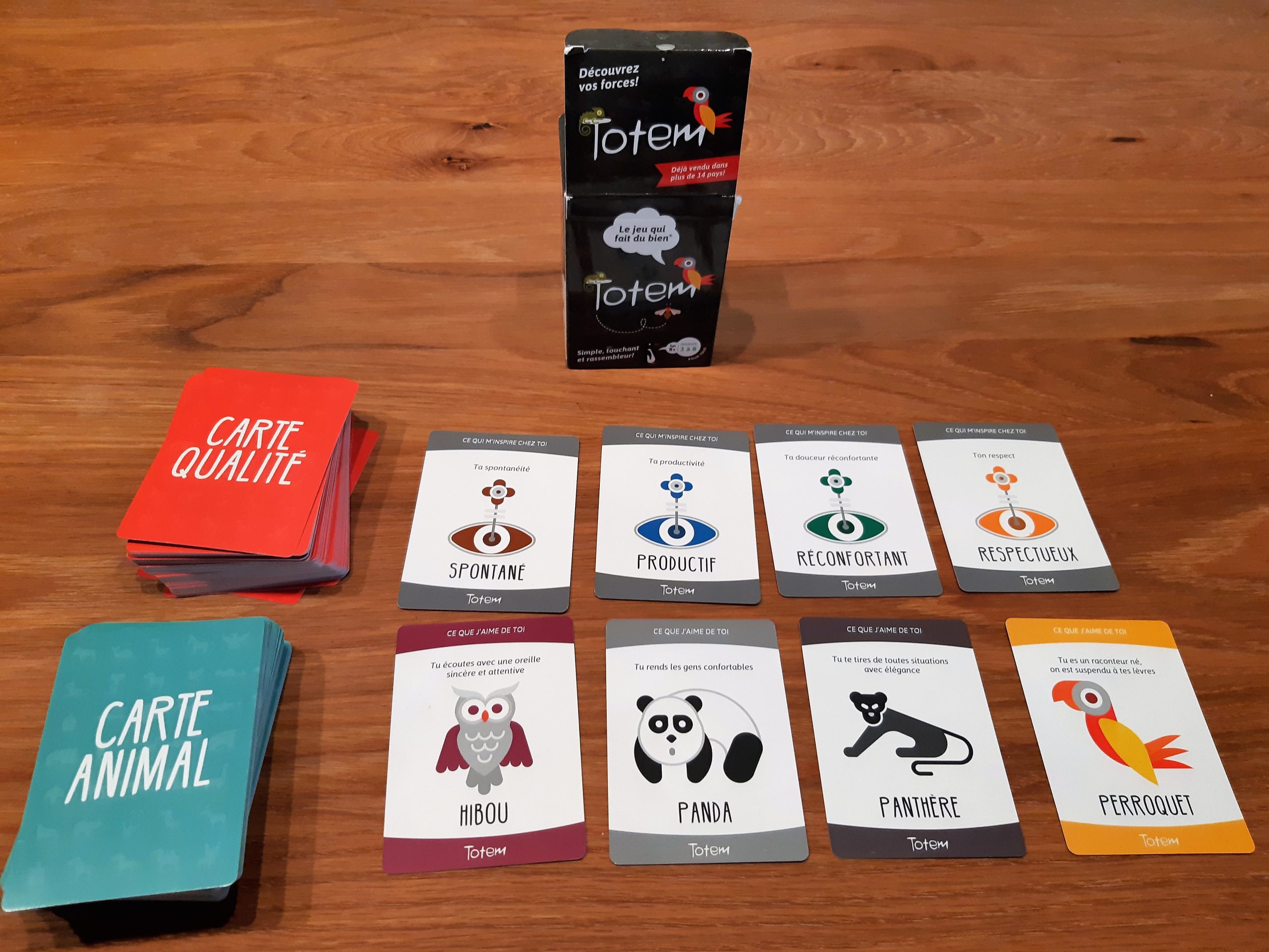 Totem, le jeu qui fait du bien, est le jeu de cartes qui permet de vous amuser, tout en découvrant vos forces et qualités à travers le regard des autres.