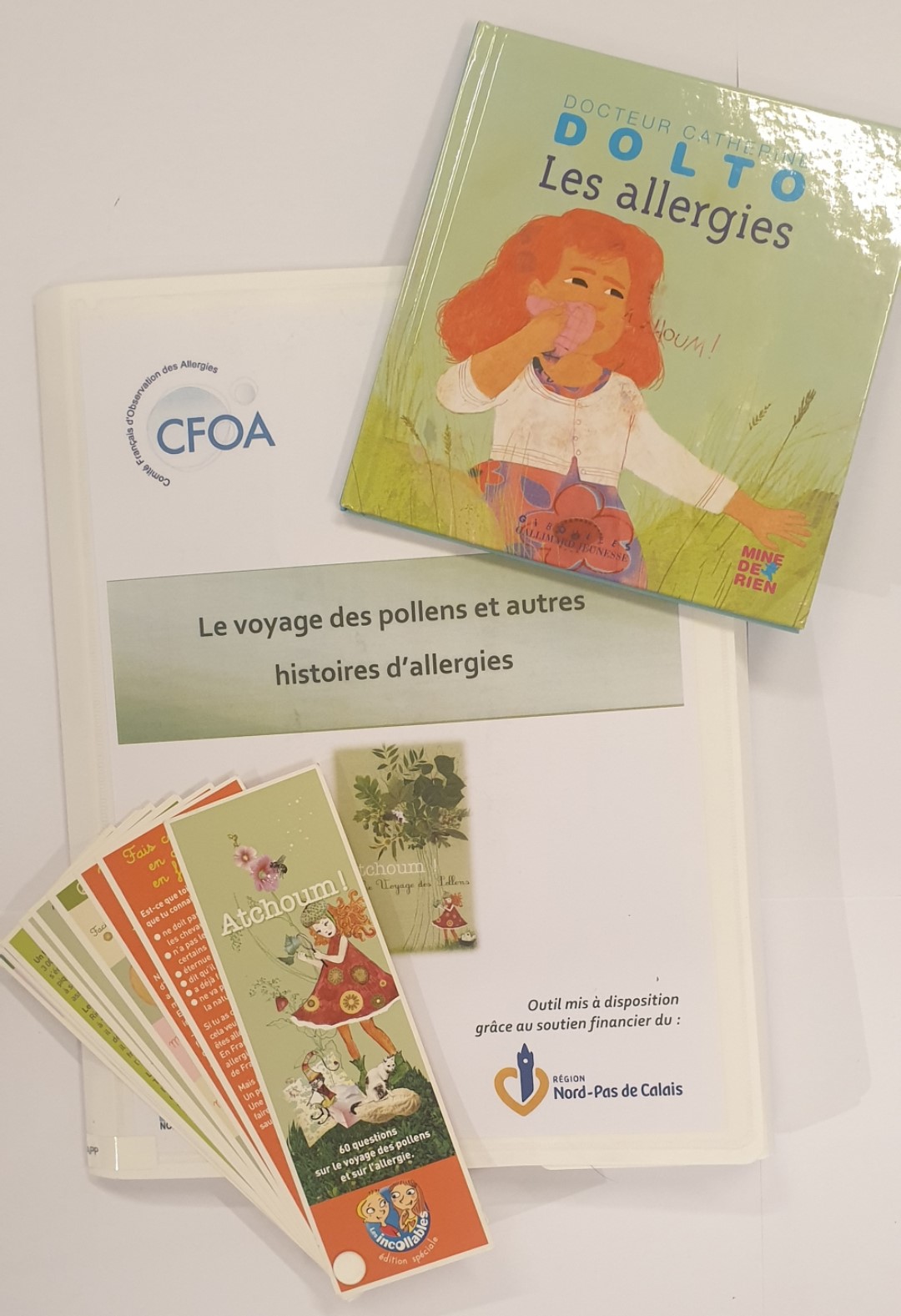 pochette contenant un éventail des Incollables, une affiche didactique, un livre Mine de rien, les allergies de Catherine Dolto